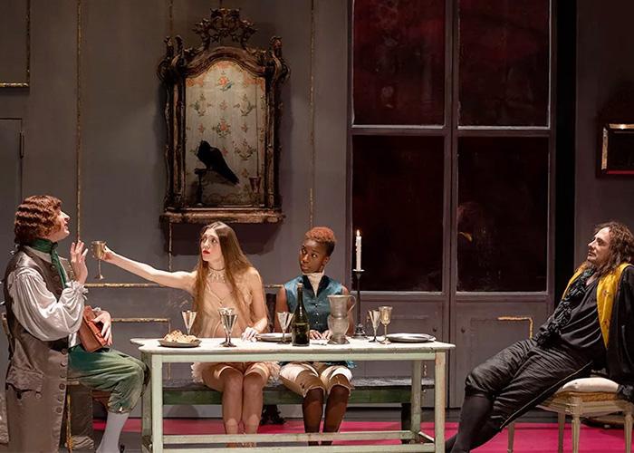 La mise en scène, les décors et les costumes de Macha Makeïeff nous plongent avec une élégance perverse dans l’atmosphère libertine du XVIIIe siècle et des Liaisons dangereuses. Ce clair-obscur sensuel laisse néanmoins entrevoir des lendemains moins voluptueux. Xavier Gallais est parfait de noirceur dans ce Dom Juan de fin de règne, rattrapé par la vengeance d’Elvire et de toutes les femmes qu’il a bafouées.