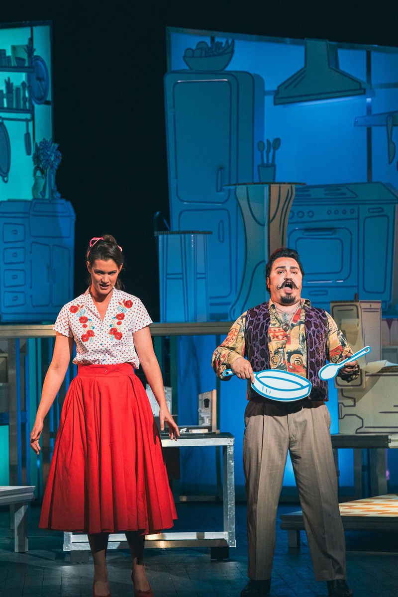 Pour rendre l’œuvre accessible et vivante, les dialogues sont en français, et les airs chantés en italien, transformant chaque réplique et chaque note en moteur du rire et de la surprise. La scénographie, inventive et dynamique, accompagne le flux de l’intrigue, faisant du décor un acteur à part entière.